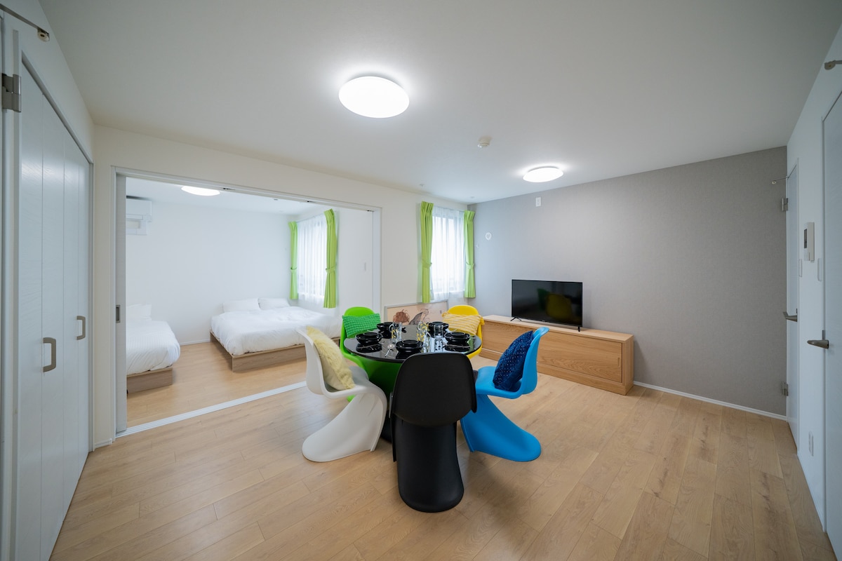 Enjoy a spacious Japanese-modern room with a cozy beds, tatami area, large dining table, kitchen. The room has 2 washbasins, 2 private showers, and 2 toilets, offering great comfort for groups. Located right in front of Tokyo Skytree, just 2 minutes to Solamachi and walking distance to Asakusa, it’s the ideal base for sightseeing. The area has supermarkets, convenience stores, and many restaurants. We have 9 identical rooms available. Experience your best Tokyo stay with us!