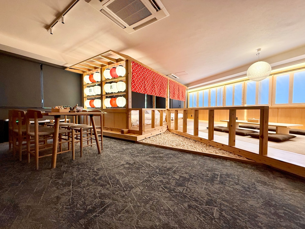 Welcome to RYU NO MA, a cozy loft room located on the 2nd floor, featuring two single beds and unique wall art inspired by mugen nō — the dreamlike world of traditional Noh theater. Just 4 minutes on foot from JR Yamanote Line "Otsuka Station". *Self check-in and check-out. *10 minutes to Shinjuku / 18 minutes to Shibuya by JR train.