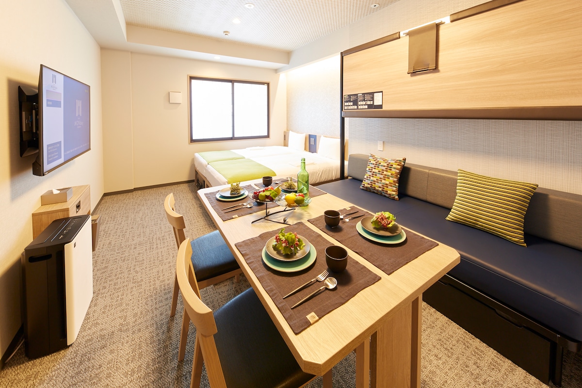 2分钟到上野、步行15分钟到浅草寺、6分钟到车站、厨房、22.06平方米、1.4米床、102室