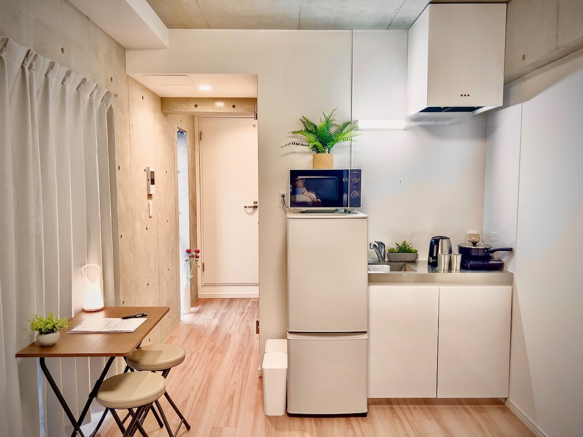 Newly refurbished by a prominent architect and opened in June 2025. Located in a trendy neighborhood with stylish cafes, ramen shops, bistros, and bars—perfect for enjoying Tokyo! Location: - 2-min walk to Kuramae Stn - 10-min walk to Asakusa - Direct train access from HND and NRT airport Room: - Two Semi-D beds (120x200cm), can be joined for couples or families. - Full kitchen with fridge and microwave - Washer/Dryer combo - 1Gbps Wi-fi Multiple Airbnb units available in this building.