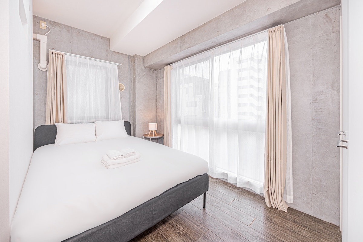 Peaceful stay one street off Meiji-dori’s cherry blossom avenue, with sakura-view cafés and restaurants 1–2 min away. Near the embassy district, Tokyo’s safest area, with English-friendly cafés and supermarkets. Morning: bakery 1 min away or breakfast café 5 min away. Night: Ebisu Yokocho, hidden bars, and diverse restaurants. Loved by Big Tech developers and digital nomads; the loft’s two doubles let even tall guests sleep lengthwise. 1 stop to Shibuya or Roppongi, tucked away for quiet work.