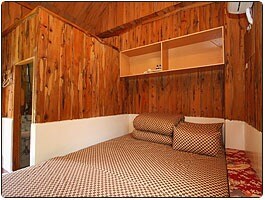 沐樂雙人房的:內裝全部用台灣檜木裝潢,房內充滿檜木香氣,床是一張queen size 的雙人床,乾濕分離衛浴設備、浴缸、獨立小庭院。