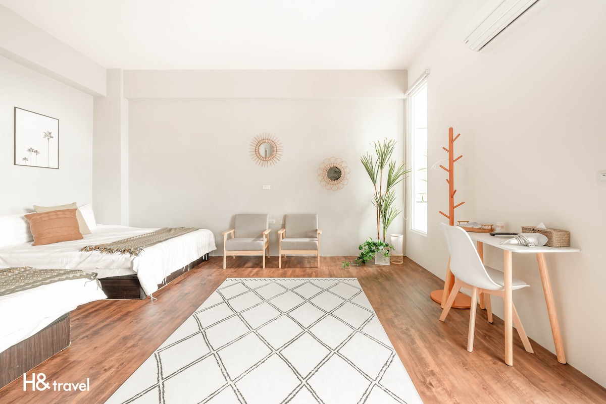 [静谧庭院] 台東市中心 侘寂風 日式中庭樓中樓家庭房 獨立客廳廚房
