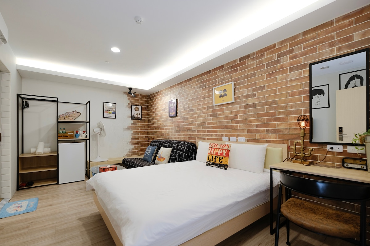 毗鄰勤美綠園道.草悟道/家庭四人房(2人即可入住)(續住有優惠)/客廳.小吧台/美食商圈/審計新村