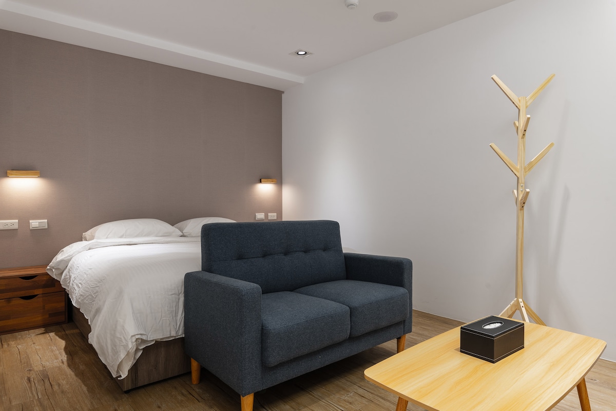 毗鄰勤美綠園道.草悟道/家庭四人房(2人即可入住)(續住有優惠)/客廳.小吧台/美食商圈/審計新村