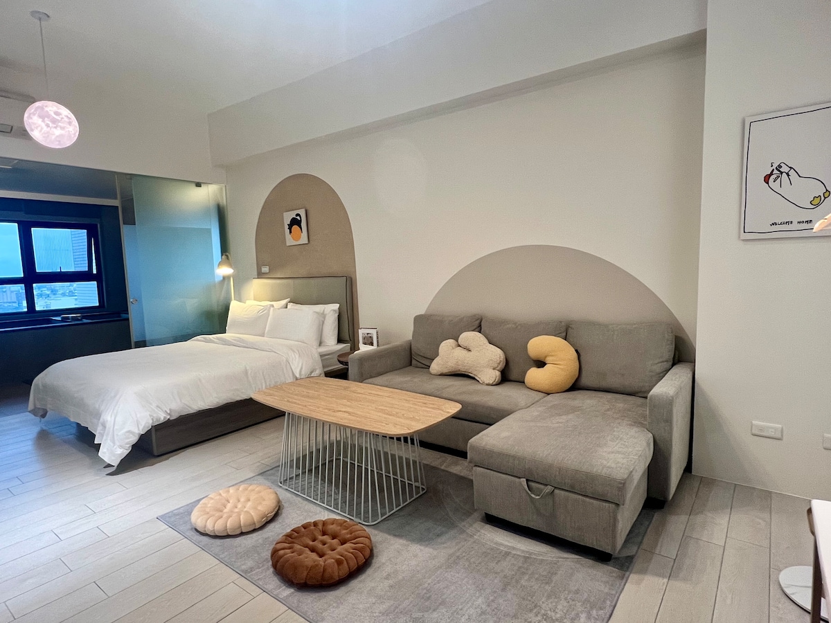 /請詳閱所有注意事項 僅接受優質住客 如有不合需求 請勿訂房/ 👉目前房源所處大樓其他樓層有施工情況,可能在白天時會有些許噪音,不介意者再行訂房 此房源為一房一廳的大空間。 .電梯大夏,全棟禁止吸菸*請注意房內吸煙罰款$5000NTD .環境單純,不接受會喧嘩大聲及酗酒脫序的客人 .維持環境,為維護左右及樓下鄰居的住宿品質,若您的小孩或友人會奔跑跳動不受控,恕我們無法接待 配合政府響應環保,我們不提供一次性商品 (牙膏牙刷刮鬍刀梳子浴帽等個人用品,有提供毛巾浴巾) |屋內 此屋宜軟爛 客廳:55吋小米電視、158公升大同雙門冰箱、Gree冷氣,五道Ro逆滲透飲用水、電磁爐、櫻花牌除油煙機、小米電熱水壺、小米吹風機 衛浴:乾濕分離、潤覺茶洗髮沐浴二合一 臥室:一張182*188cm加大雙人床,一件180*210羽絨被、兩顆羽絨枕、兩顆乳膠枕