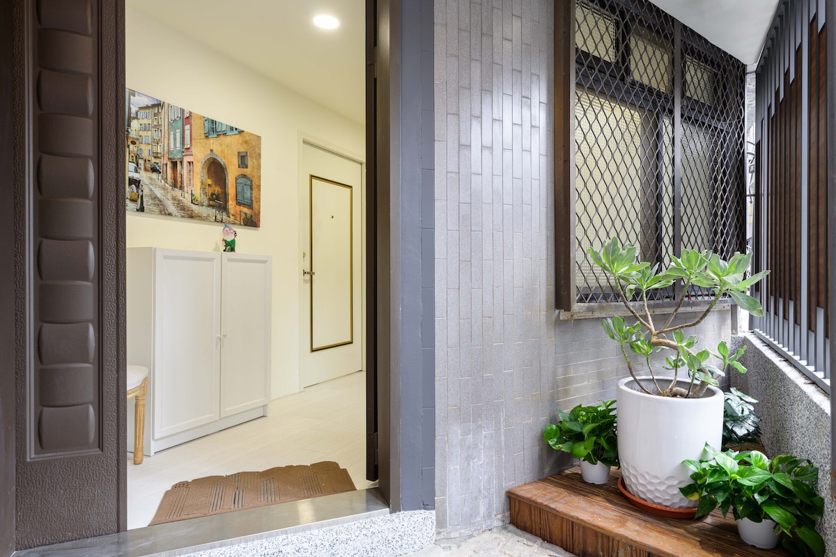 室內的灰白主色,配搭北美木紋銅色傢俱及家飾, 用心為您的居住空間提供沈靜優雅的感覺。日韓系電器的選用,不論是無線充電藍牙喇叭,大螢幕伸縮高清電視,都能滿足您對影音效果的要求。房源位於高樓內縮樓層,阻絕不必要的噪音並滿足您對景觀,安靜及隱私的要求。大樓並配有全天候警衛,住戶專屬電梯,公用大露台,以及地下收費停車場, 位處西門町核心路段,無論搭乘捷運或自駕都非常方便。Earth tone- based interior design offers warming, calm, healing and delighted atmosphere. Room facilities, including double bed, en- suite bathroom with shower enclosure, air conditioning, smart 4K TV with movies/Netflix, WIFI internet, cove lighting and music player with wireless connection & USB charger ports.