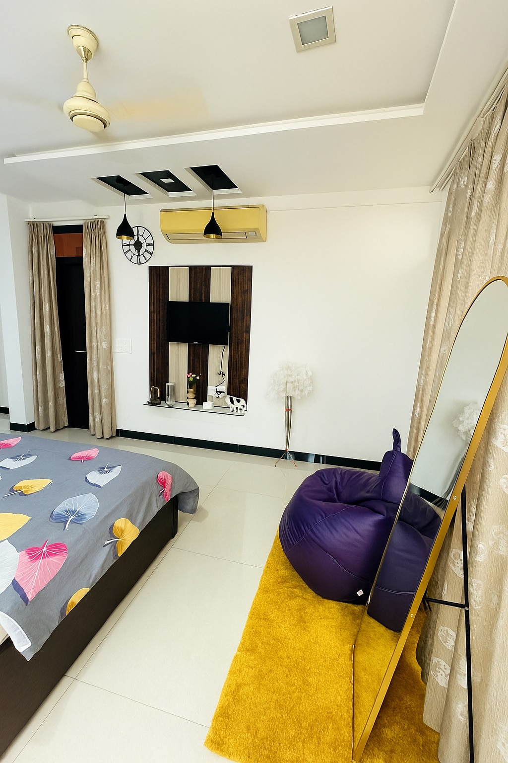 Modern Interiors. There is Hot/Cold AC with filtered running water. 5G Wifi and all essential services just one call away. Fully furnished Kitchen, Study Table, Sofa cum Bed washing Machine 2 beautiful Washrooms I'm always available to make your stay hassle free and memorable .....:) Unmarried couples are prohibited 🚫 by local authorities Look forward to welcoming YOU
