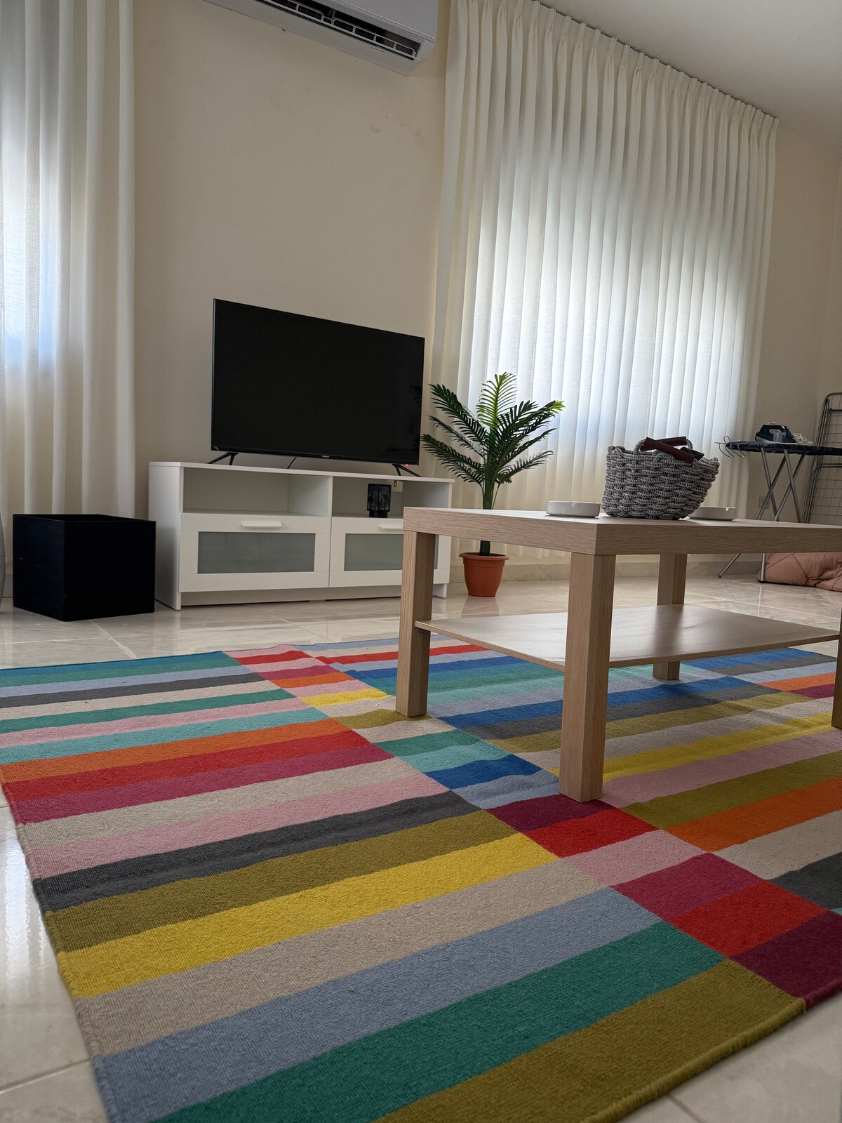 A modern looking 100 sqm open space 2 bedroom apt in one of Amman's best areas. The apartment is in a lively neighborhood and is walking distance from the US embassy - 2 blocks away from the park and Cozmo (grocery store). Cleaning service during stays is available at an additional charge.