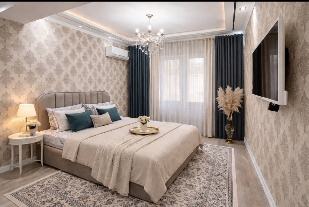 Stylish and spacious apartment in the heart of Khujand, perfect for up to 4 guests. Located in the city center, it offers a comfortable living space, fully equipped kitchen, cozy bedrooms, and modern amenities like Wi-Fi, air conditioning, and a TV. Ideal for both business and leisure stays. Enjoy the convenience of being close to shops, restaurants, and local attractions. Book your stay today!