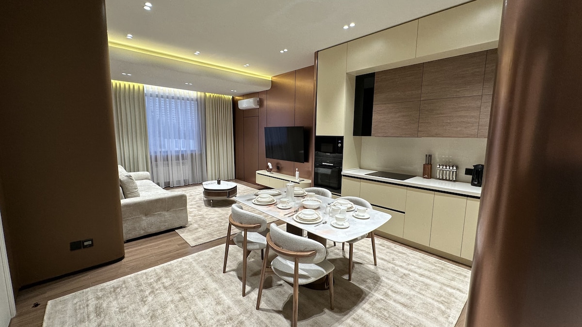 Stylish Loft Apartment in the Heart of Dushanbe Welcome to our newly renovated loft apartment, a modern and comfortable space designed to make your stay in Dushanbe unforgettable. The apartment features a stylish interior, quality furnishings, and all the amenities you need for a relaxing visit— for business or leisure. Located in the center of the city, just steps away from popular restaurants, cafés, banks, shops, and a supermarket. Everything you need is right at your doorstep.