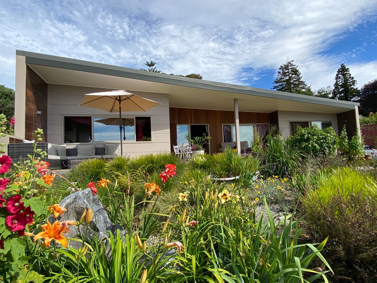 Peaceful, if you want a quiet nights sleep in a self contained cottage, this is it! Panoramic sea views in a rural garden setting & native bush surrounds. Don't forget to go outside and look up at the stunning night sky, you'll see the milky way. 5 minutes drive from Takaka & central to everywhere in Golden Bay. Very comfortable and modern bathroom with underfloor heating. Private deck from bedroom with sea view. Full kitchen facilities. Smart TV with movies. Wonderful birdlife.