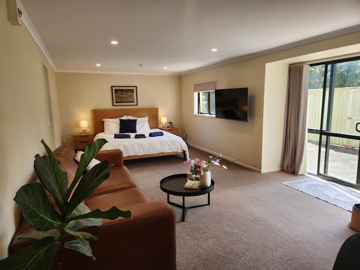 Large space you access by private entrance using smartlock technology. Very peaceful, private & furnished more as a beautiful home than a hotel. Our guests keep telling us how much they love the projector, which turns a wall into a Cinematic movie theatre! Luxury linens, comfy furniture and secure offstreet parking. Five min walk to the best Factory Outlet Mall in Auckland and 10 mins to our beautiful Iconic Cornwall Park. Bus stop outside the gate and train station nearby.