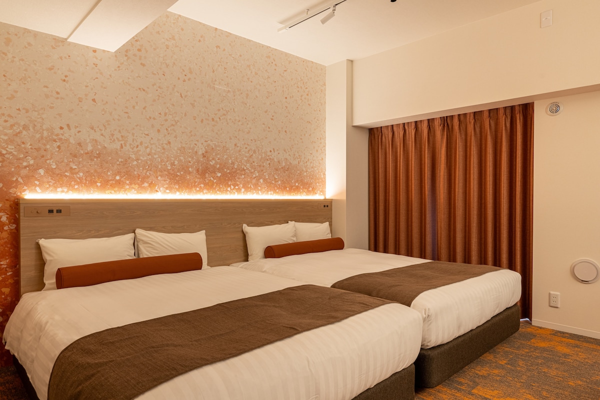 東京リリアルホテル#201 室内面积26㎡ 1张2*2m大床 2张1.95*1m小床可同时容纳4人