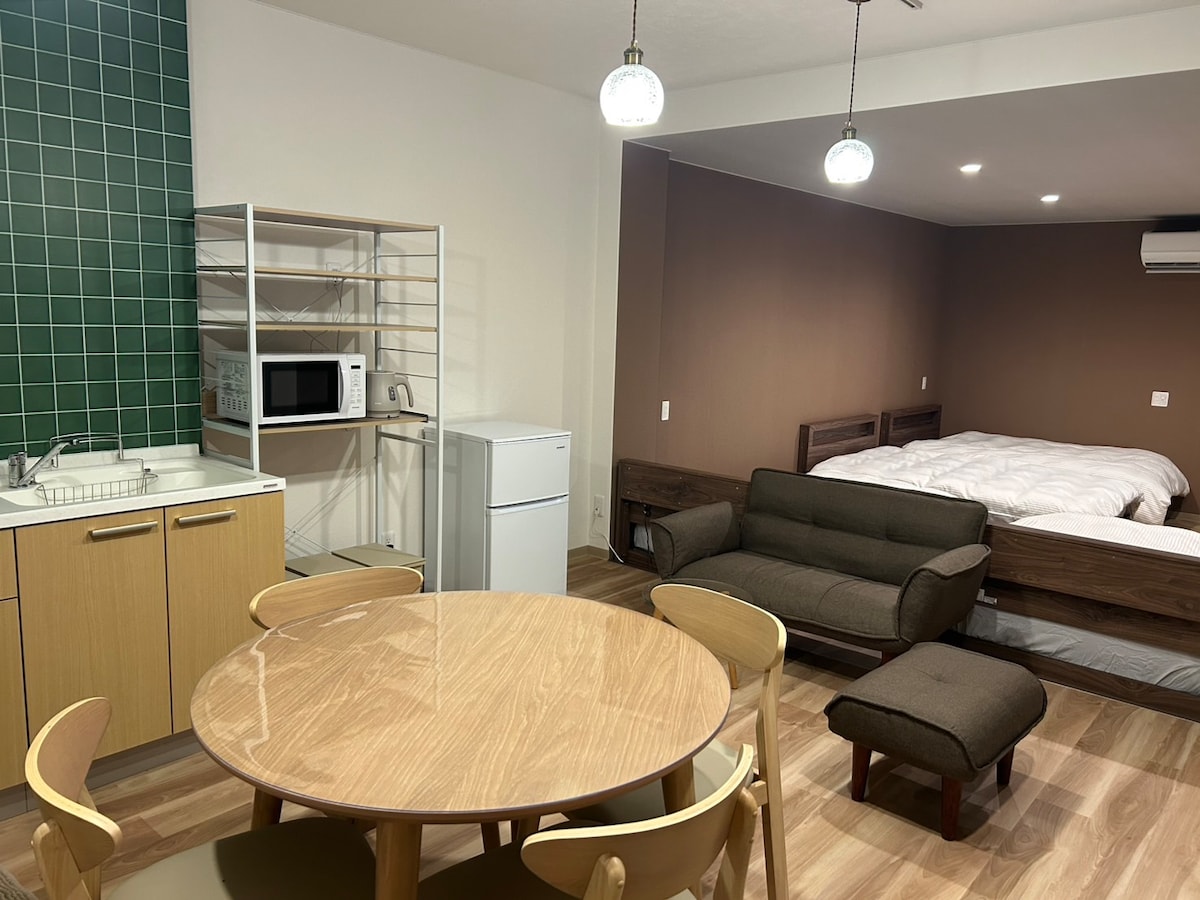 适合小家庭(最佳人数3–4位成人)/住宅区请安静/厨房极小,不宜烹饪/距车站1.4公里(途中有坡道)