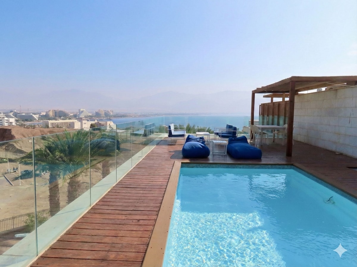 ⚠️Only Hosting Families ⚠️ Escape to our stunning penthouse in Eilat, a haven for memory-making! Revel in breathtaking gulf views from our large balcony, the perfect spot for Red Sea sunsets. Everyone has their privacy with 3 large bedrooms and 3 bathrooms. Cook up a storm in our fully equipped kitchen, and dine in style in our elegant hall. With free parking, an elevator, and essential amenities just a stroll away, our penthouse is the perfect destination for an unforgettable vacation!