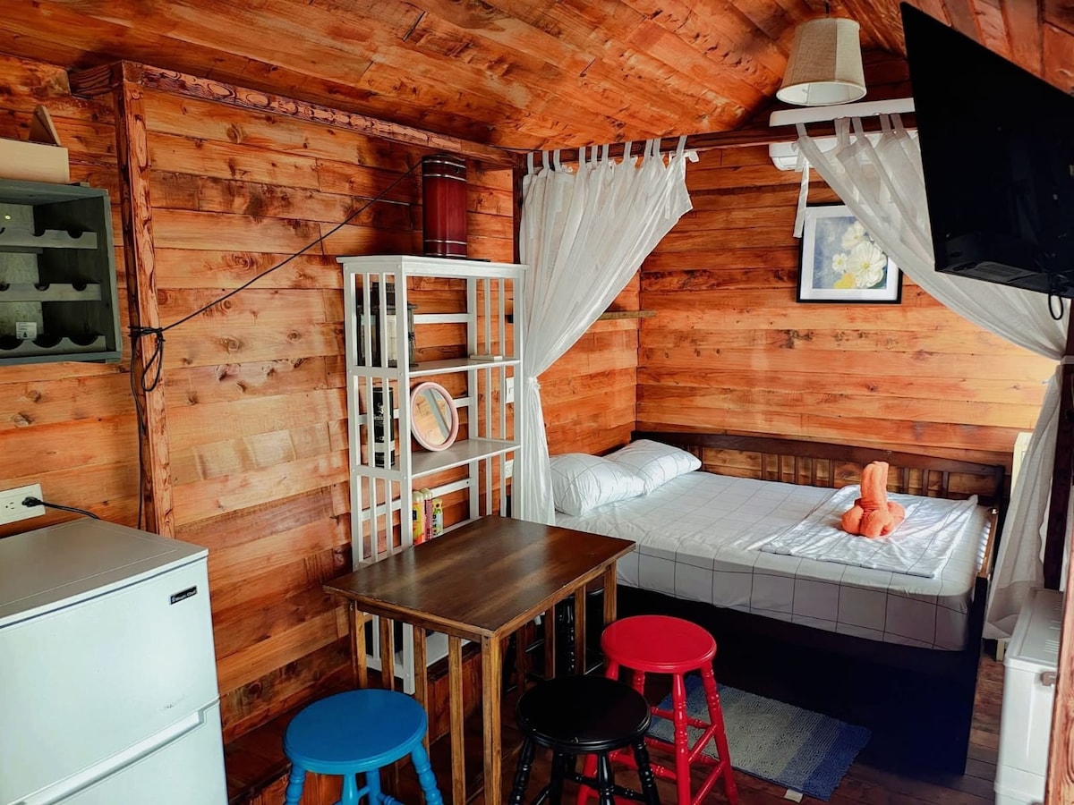 Alojamiento solo para adultos. ¡¡Bienvenido a unos de los lugares más impresionantes del mundo!! Todas las cabañas son para dos personas e incluyen cocina con sus respectivos utensilios, nevera pequeña, pantalla plana 50 pulgadas, aire acondicionado, parlantes bluetooth, internet 100 megas, armario, camas tamaño queen, ropa de cama, baños privados con secador de pelo y artículos de aseo gratis, toallas de baño, toallas de playa, terrazas con vistas a la piscina. También incluyen caja fuerte.