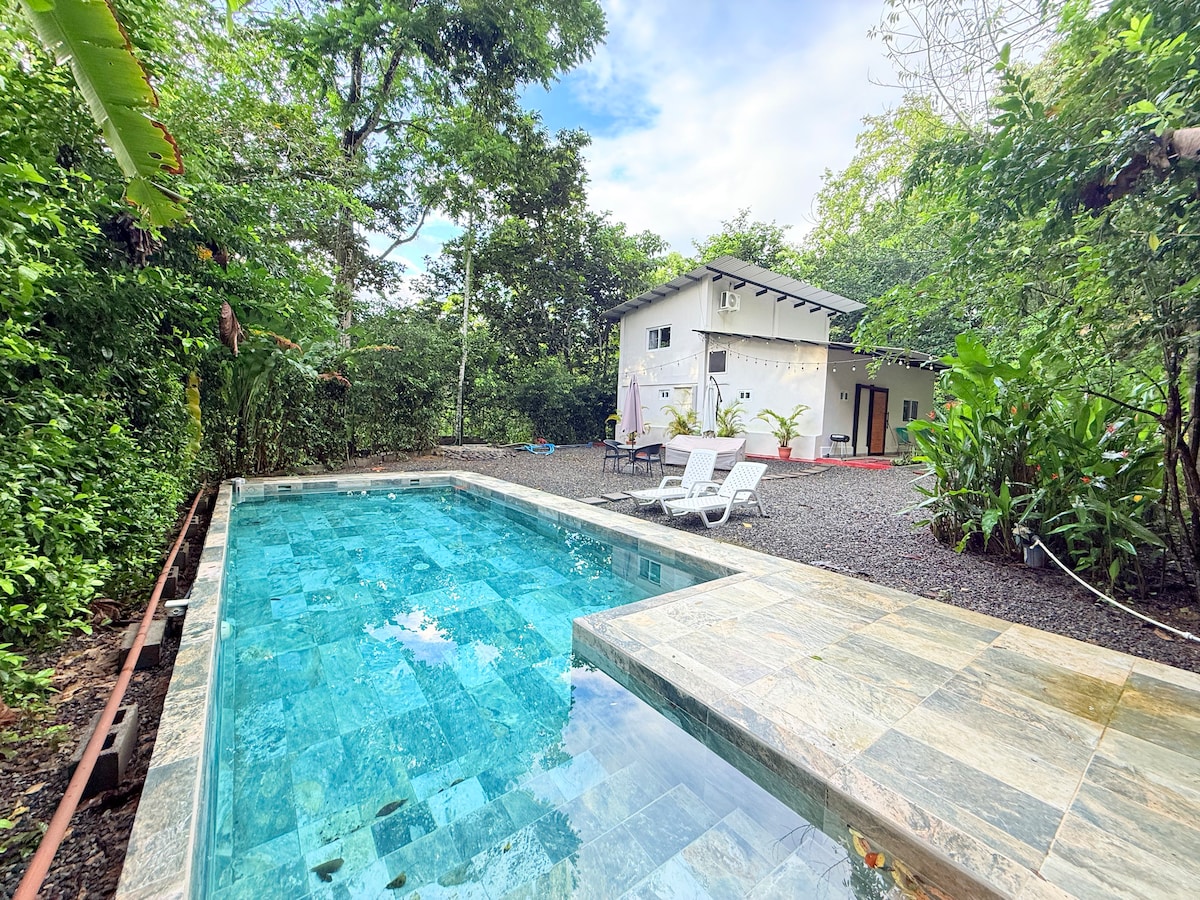 Large, open concept home in the heart of Playa Chiquita. Relax and unwind in our lush tropical gardens while you watch the nature from your own private pool. The house has fiber optic internet , a small gym area and multiple work spaces for those who must work remotely. The property is a 10 minute walk away from one of the most beautiful beaches in Costa Rica, where the jungle touches the sea and you can swim in natural coral pools. You'll also be close by to great restaurants and a supermarket.