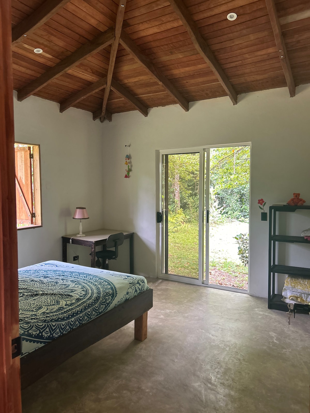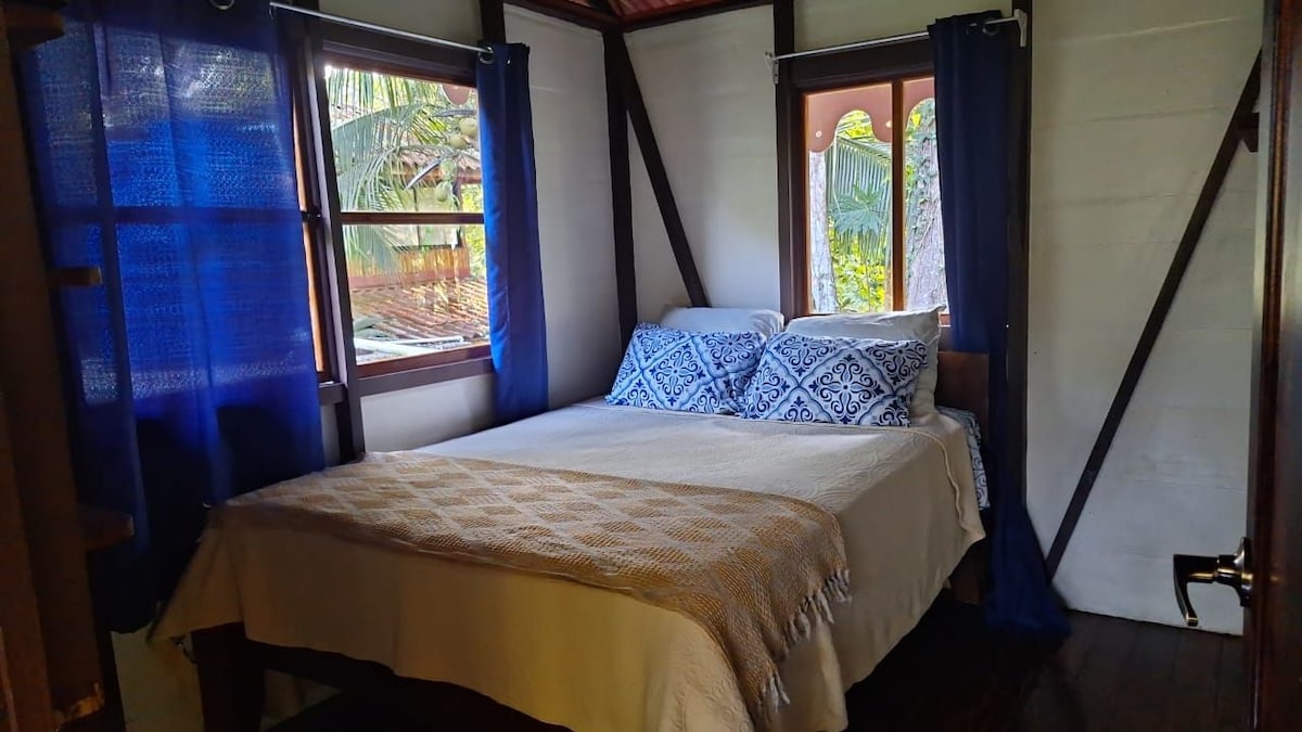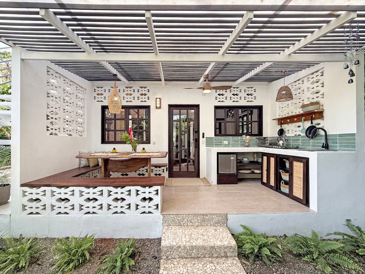 Experience the boho-tropical charm of our guest house, an elegant cabin for 1–2 guests in Cocles. leep comfortably on a double bed with an orthopedic mattress and soft topper, enjoy the convenience of a kitchenette, and the window bay overlooking the garden filled with plants, fruit trees, iguanas, geckos, and colorful birds. Nap in the hammock or cool off in your private mini pool oasis, perfect for travelers seeking authenticity, nature, and style.