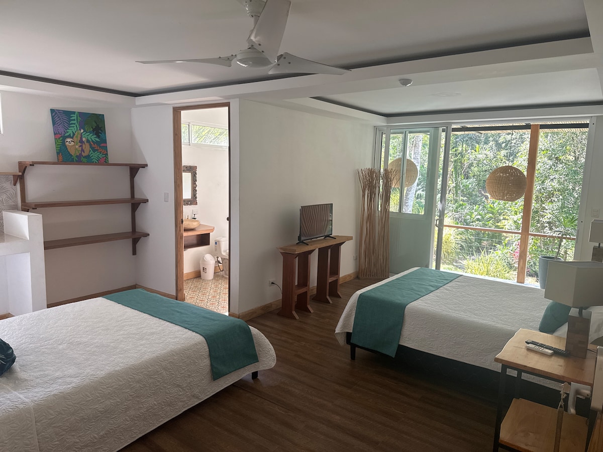 This comfortable, cozy, clean, air conditioned studio apartment in the heart of playa chiquita awaits you. Located in a safe and lush jungle neighbourhood you will be surrounded by birds, sloths, monkeys and butterflies. Take a serene walk along our private beach access path where you will absorb the soothing jungle energy as you meander towards the crystal blue shores of the carribean ocean. we offer an inclusive experience for guests that want ease... ask about meal plans and transportation