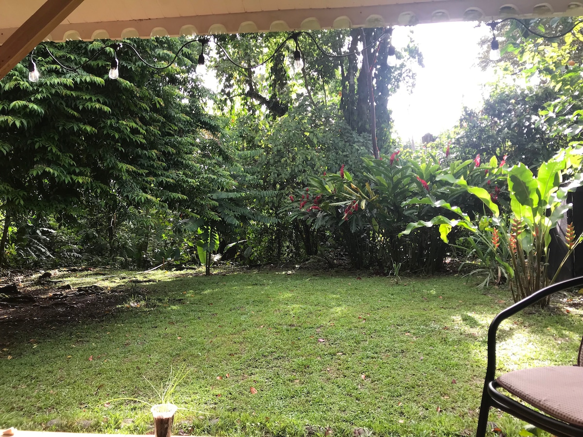 Our charming studio cabina with sleeping loft is located 15 minutes walking and 5 minutes by car to the beautiful Cahuita National Park and village of Cahuita. The casita comes with an equipped kitchen, private bathroom and hot water shower. Steps from the cabina’s front porch is a roofed rancho with dining area and hammocks where you can relax and watch the playful visits of the Howler and Congo Monkeys, tucans and occasionally iguanas.
