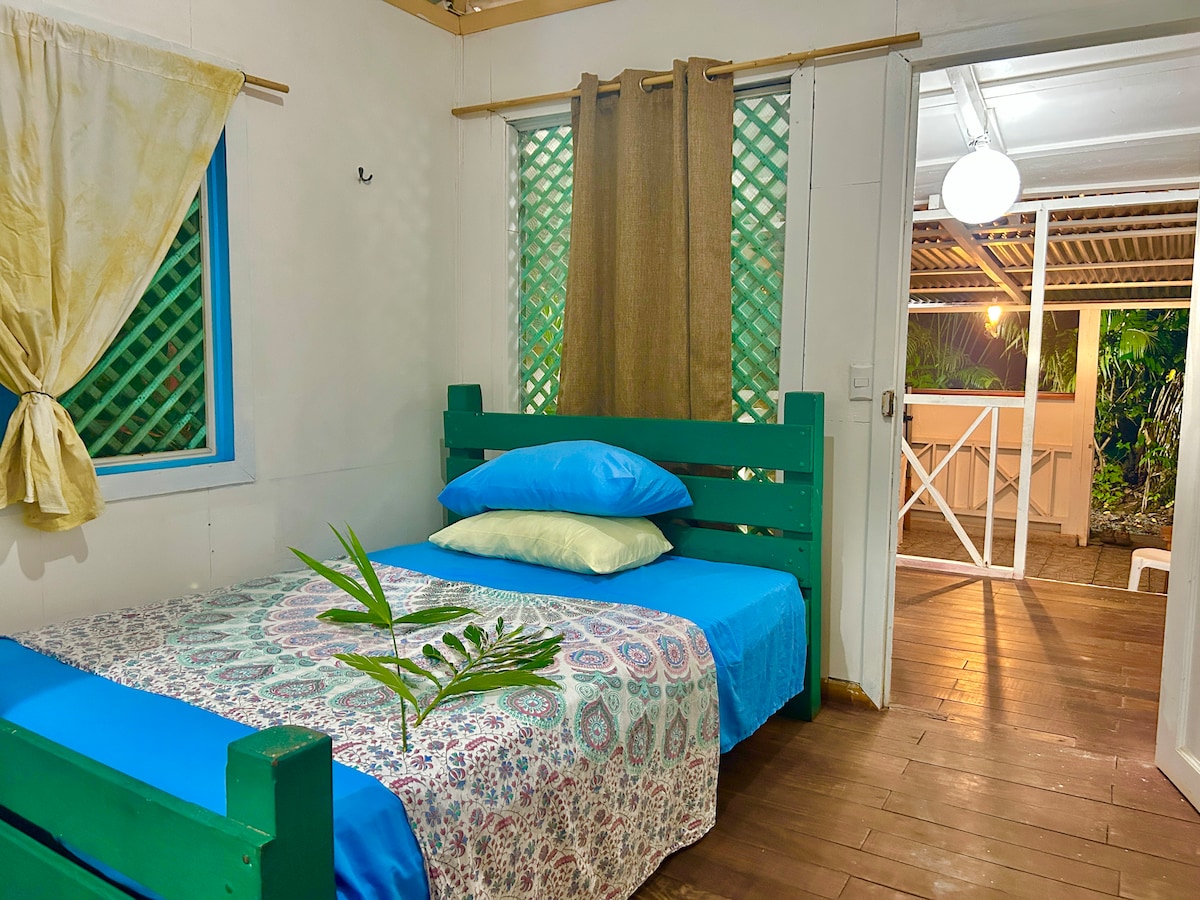 Caribbean Style! Blessed House is a Caribbean local family property. 5 minutes from Puerto Viejo, with 24/7 security, an amazing pool with a BBQ set and kitchen you can share, private parking and an amazing view of all the tree tops and the coast you need to explore. Hummingbird Bungalow is a great space for couples who want their own and beautiful private and quiet space or for a small group or family of three, where that third guest can sleep comfortably in his/her own bed.