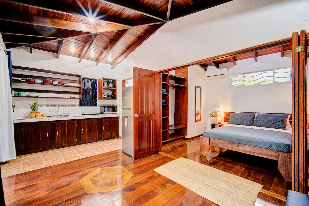 Casa Chilamate es un espacio tranquilo y espacioso, ideal para descansar o trabajar con comodidad. Casa completamente nueva con una ubicación insuperable, cerca de las playas más populares, restaurantes y supermercados. Cuenta con una confortable cama king y una cama adicional, aire acondicionado y un espacio de trabajo. Rodeada de naturaleza, ofrece una hermosa vista y acceso directo al río, brindando privacidad, calma y un entorno perfecto para desconectarse y recargar energías.
