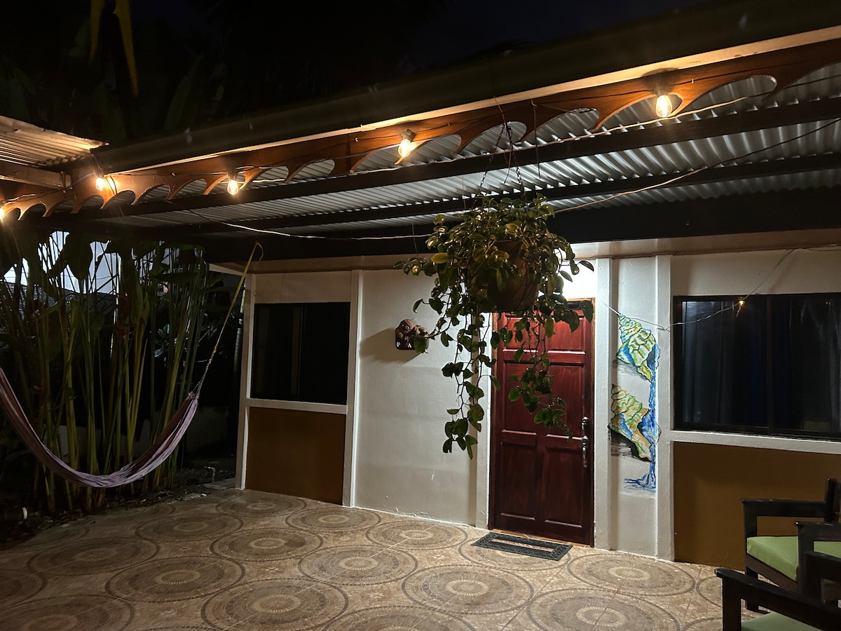 Relájate con toda la familia en este tranquilo lugar para quedarse. A 14 kilómetros de la frontera con Panamá, 5 minutos de la playa, avistamiento de las tortugas Baulas entre los meses de abril y agosto, con acceso a senderismo dentro del refugio Gandoca Manzanillo, vista de la laguna y sus manglares, también se pueden observar diferentes tipos de animales por ejemplo aves, monos, manatíes y muchos más, hay un bar restaurante frente a la playa, la playa es especial para hacer surf, Bañarce, etc