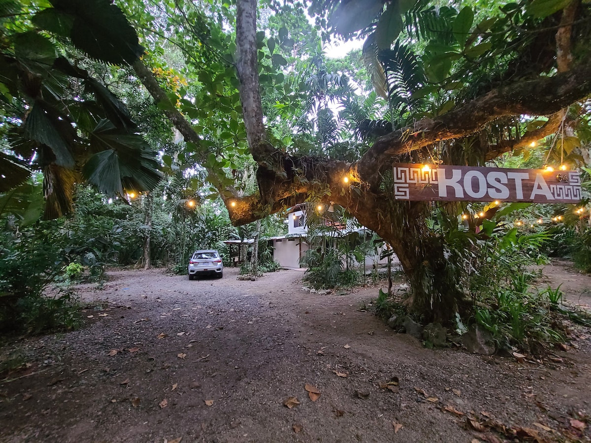 Take it easy at this unique hostel airbnb. The hostel is surrounded by tall trees and all the canopy wildlife you'd expect in the jungle. the building itself was originally the first lodge in the area, and was built in the traditional open concept. We are a 4 minute walk from playa Chiquita Beach, a grocery store and several restaurants. The space has a shared kitchen, toilet, and shower. our unique hostel space is perfect for anyone looking for a more intimate hostel experience.
