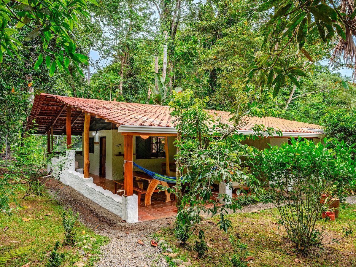 Forget your worries in this spacious and serene, air conditioned bungalow. Allow your senses to reconnect with nature as you relax to the sound of the jungle and ocean waves, and rise with howler monkeys & toucans. Leisurely walk down the road to swim by Playa Chiquita's coral reefs. Convenient grocery shop is a short walk from the house. Bike to Punta Uva beach for surf lessons and swimming. Close to Manzanillo National Park, the Ara project and Puerto Viejo for shopping & gelato.