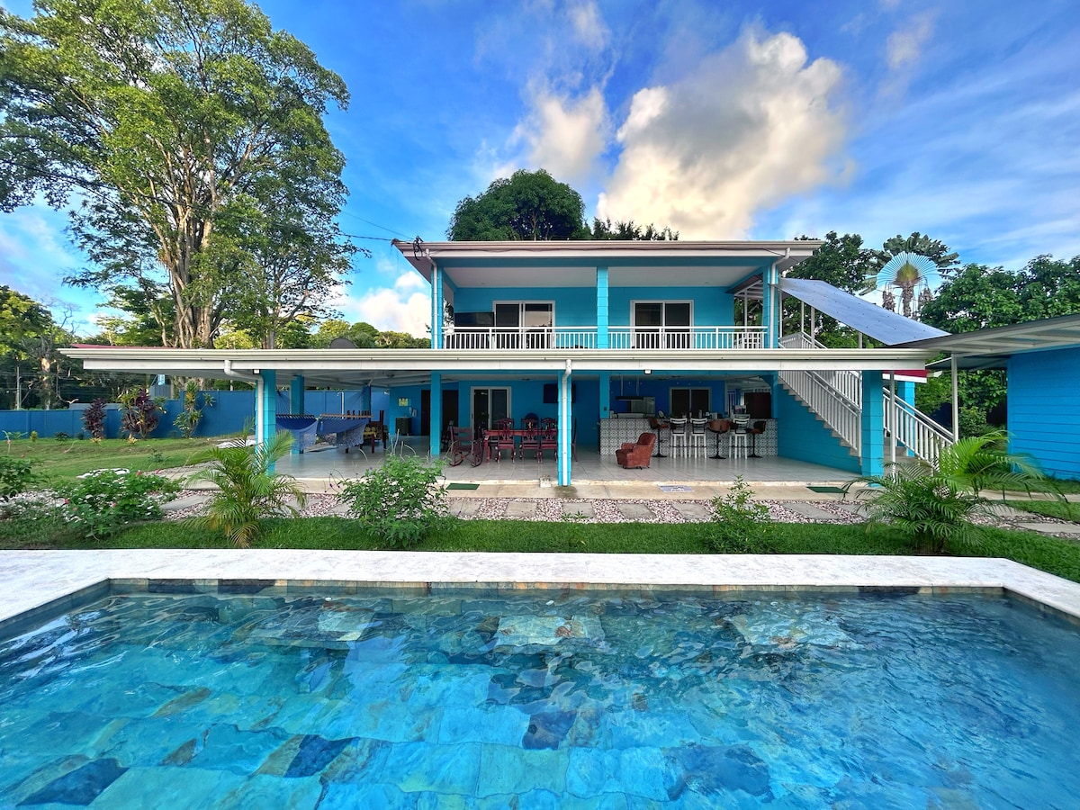 Beautiful beachfront house for up to ten people. Located just 30 m. from a white sandy beach and surrounded by lush nature. Private swimming pool. Coral reefs. Puerto Viejo town, with all its amenities and nightlife, is only a few kilometers away (about 7 minutes by car). A small grocery store and restaurants within walking distance. The garden is full of tropical flora and fauna , monkeys, toucans, and more are seen. The sea is usually calm, clear, and very safe for swimming and snorkeling.