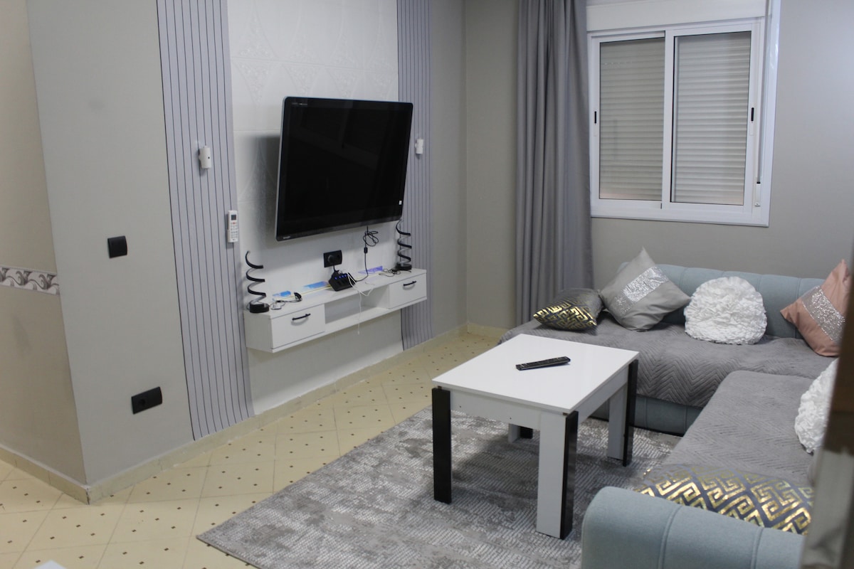 Cosy Apartment 10 Minutes from Marrakech Airport Located just 10 minutes from Marrakech Menara Airport, this stylish and cozy apartment offers the perfect blend of comfort and convenience. Nestled in a quiet neighborhood, it provides easy access to the city’s vibrant medina, cultural landmarks, and popular attractions. Whether you’re here for a quick stopover or an extended stay, this apartment is your ideal home base in Marrakech.