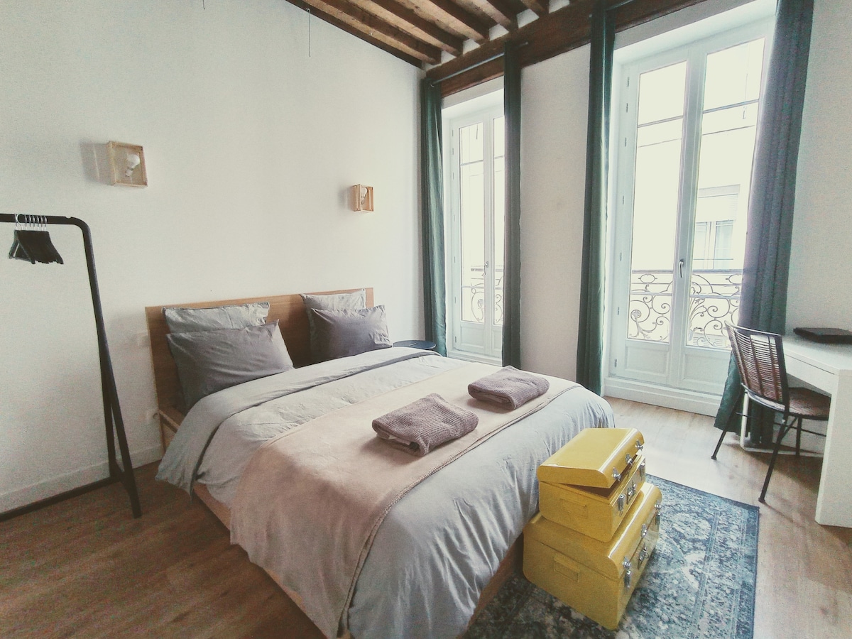 Beau 2 pièces de 50m2 dans un vieil immeuble, au centre ville de Dijon ! Logement situé dans le quartier de la gare (1 min de la gare et son arrêt de tramway), 2 min de l’avenue Victor Hugo et de la place Darcy, une place centrale de Dijon ! Déposez vos valises, et partez à la découverte de la ville ! ARRIVÉE / DÉPART AUTONOME ! (Accueil sur demande) Logement entièrement équipé et préparé pour votre séjour : Linge, draps, serviettes, épicerie de base, thé/café sont fournis/inclus !