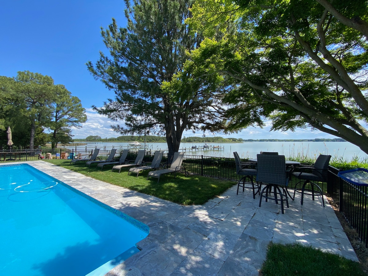 Incredible private luxury retreat on the eastern Chesapeake Bay. Complete with every amenity- saltwater pool, firepit, multiple Smart TVs, sleeps 10 in comfort, premium memory foam mattresses in every room, fast Wi-Fi, 100' pier, huge front yard. Unbelievable views!!! Extensively renovated. Please note that no parties or disturbances will be tolerated. We require that guests respect our neighbors and serene community at all times. We explicitly do not allow bachelor or bachelorette parties.