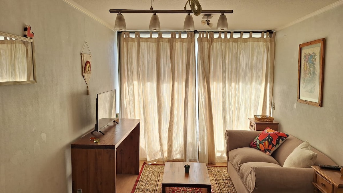 Disfruta de un cómodo y acogedor apartamento amoblado con aire acondicionado en el corazón de la Alameda de Talca. Ubicado cerca de restaurantes, bares, supermercados, colegios, universidades, tribunales y opciones de transporte público. Equipado con todo lo necesario para que te sientas como en casa. Entregamos descuentos para restobar Casa Alameda, Bar Estado y Pizza Estado.