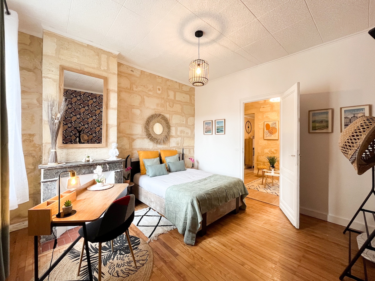 Bienvenue dans notre charmant appartement, situé à 8 minutes à pied de la gare Saint-Jean, idéal pour visiter Bordeaux ! Il dispose d'une cour couverte, parfaite pour se détendre en fin de journée. Le quartier est calme et proche de la Place Dormoy, d'un terrain de pétanque, d’une aire de jeux pour enfants et de commences de proximité. À seulement 5 minutes du Marché des Capucins, vous y découvrirez des produits frais et locaux. Nous serons ravis de vous accueillir pour un séjour agréable !