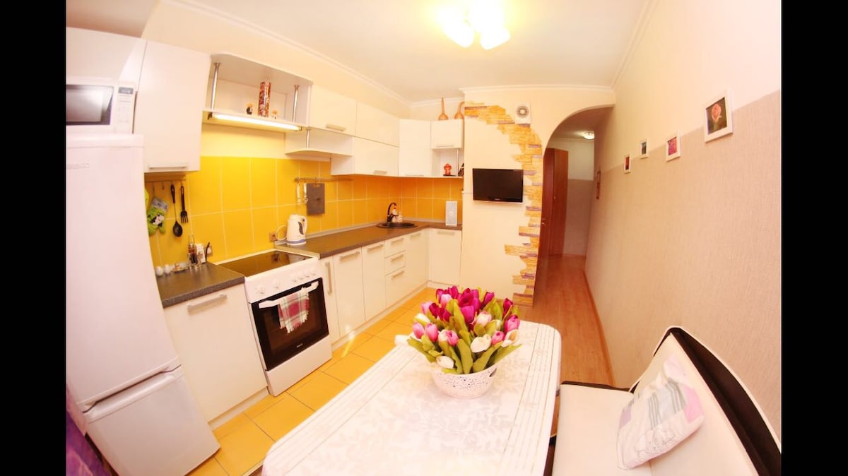 Это уникальное жилье - отличается собственным стилем. Квартира только после ремонта, все в квартире абсолютно новое. Здесь все устроено для Вашего удобства: одноразовые тапочки, дозатор с шампунем, гелем для душа, и мылом, белоснежные полотенца, свежее постельное белье, тапочки, гигиенические принадлежности, стиральный порошок, гель для стирки, кондиционер для белья. Так же есть мощный фен 2200, так что вам не придётся возить все это с собой. Удобная гладильная доска и очень качественный утюг.