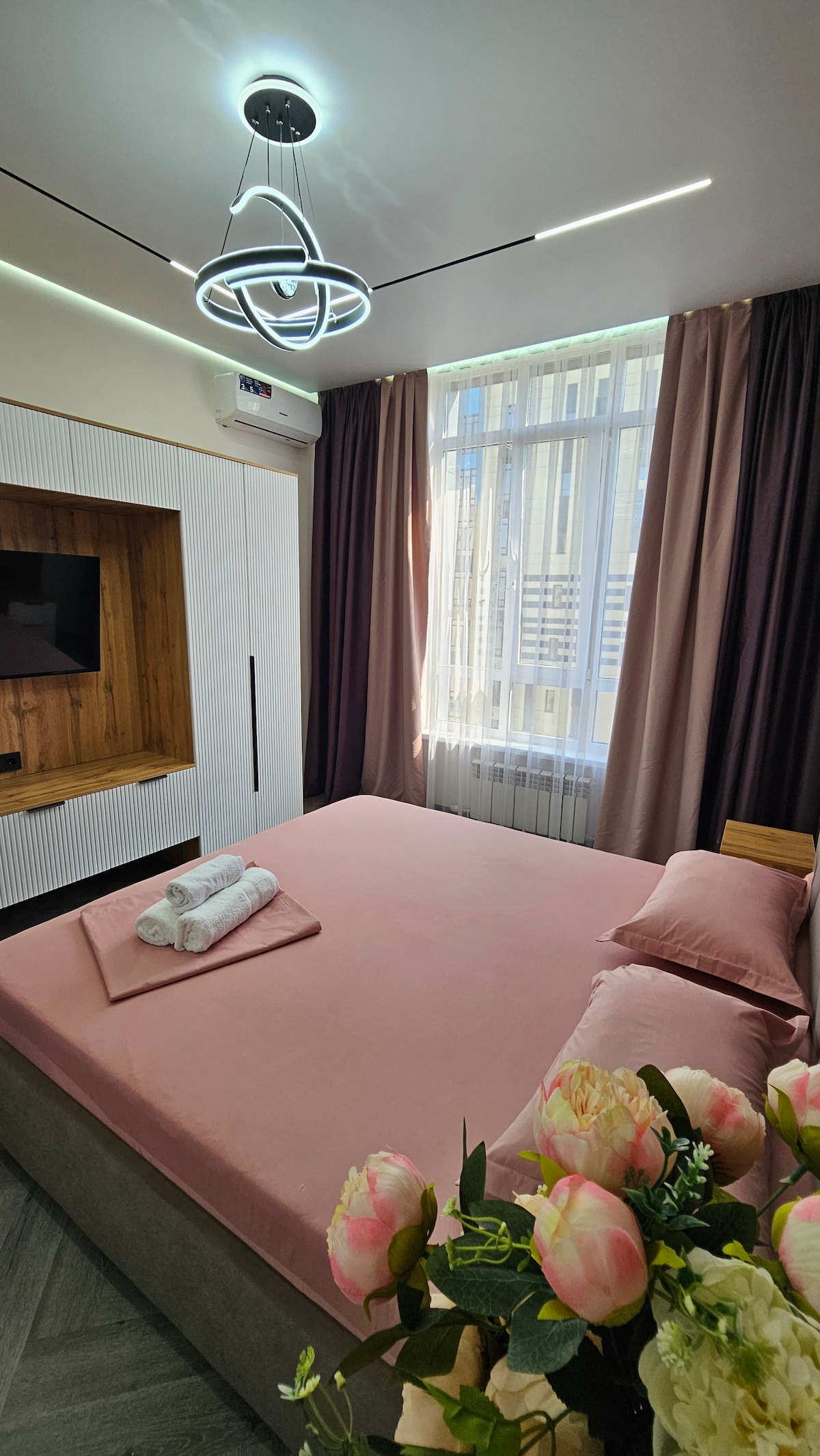 EN Modern apartment in Meridian: Wi-Fi, kitchen, washer, A/C, smart TV, balcony. Self check-in. Across from Mega Park Mall. RU Современные апартаменты в ЖК Meridian: Wi-Fi, кухня, стиралка, кондиционер, смарт-ТВ, балкон. Самозаселение. Напротив ТРЦ MegaPark.