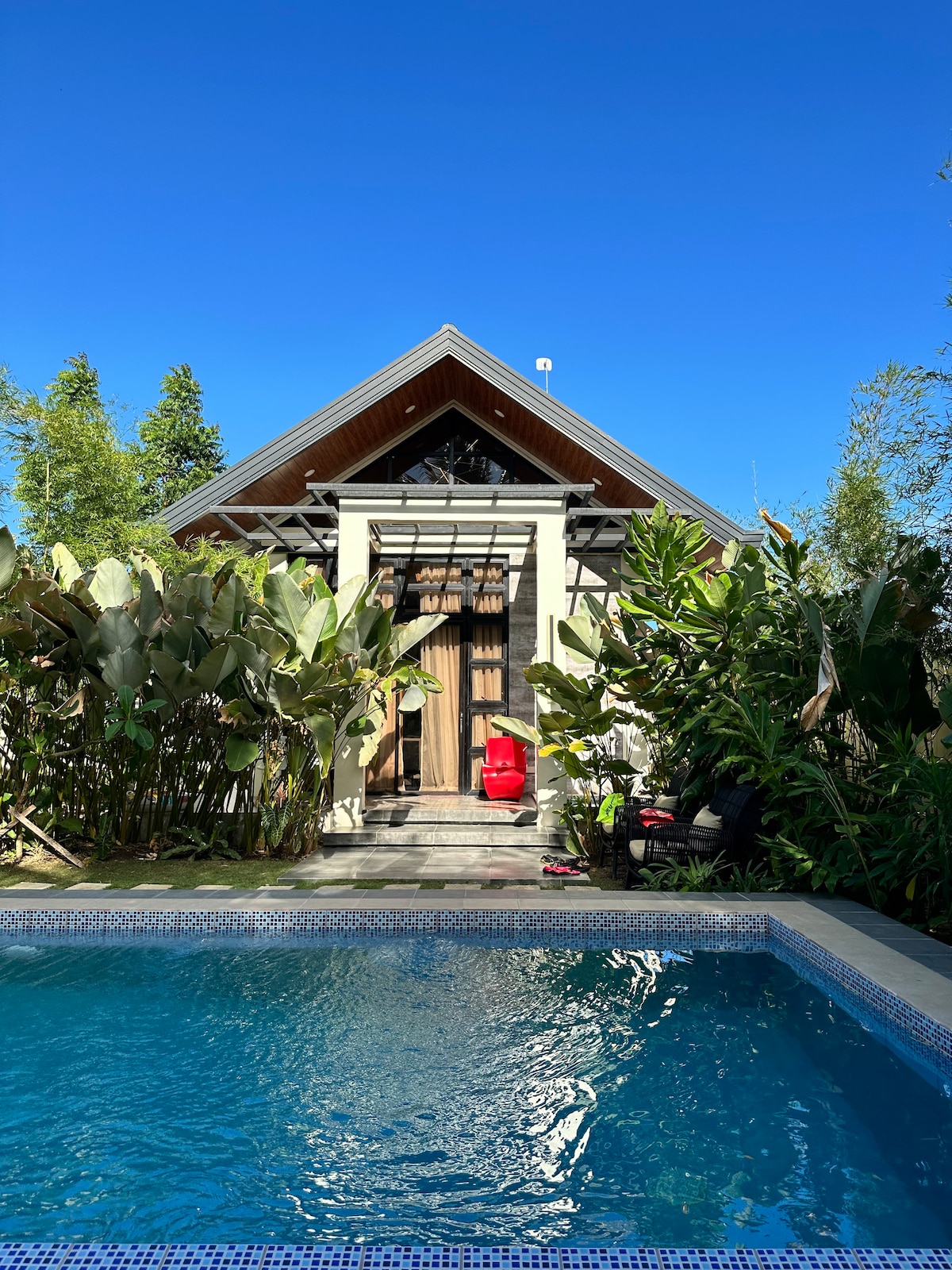 🌿 _Larue Pocket Villa_ is your ultimate tropical zen escape—a private “Pocket Villa” tucked in a lush 500‑sqm greenspace full of tropical plants .The villa sits on a mangrove. (not_ beach front). - An Infinity pool & Private Jacuzzi (non‑heated, natural feel) for refreshing dips. - An Outdoor Bathtub . - A gazebo with dining space *plus videoke* (you can sing from 8am to 10 pm) for fun gatherings.