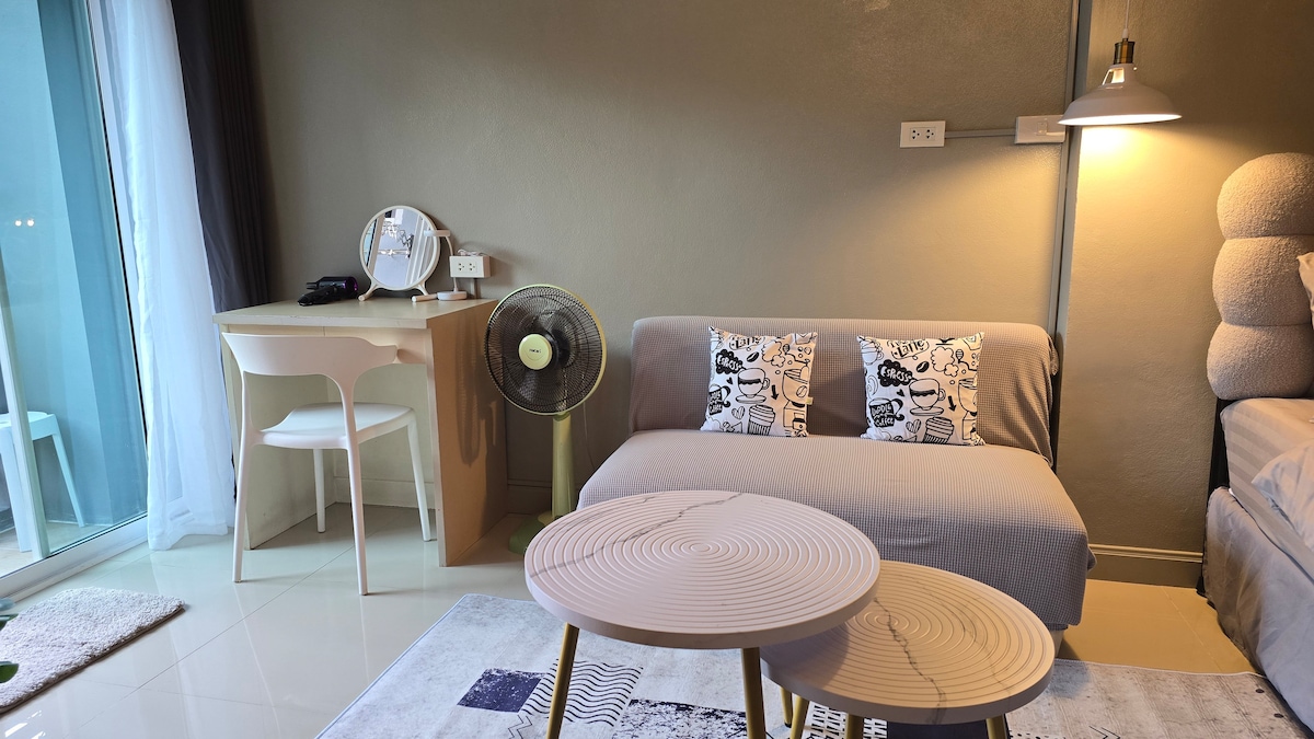 Comfortable room at Ideo mobi Charan-Interchange Condo, an old community neighborhood on the banks of Thonburi. 34 sqm, 1 bedrooms, 1 bathroom, 19th floor, nice air flow, high floor, Garden view. With a bed, 2 closets, a sofa bed, a dining table with 2 chairs, a TV, a refrigerator, a wash-dry machine, 2 air conditionings, a microwave and Wi-Fi with a pool, gym, library and a small cinema. Along with Starbucks Coffee Shop, Max Value, Dental clinic and Beauty clinic at the bottom of the building.