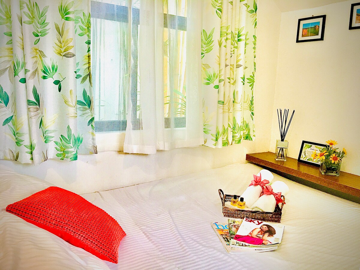 Stay in the center of the action in this one-of-a-kind place. Near to everything that you need. A very nice place to stay, hangout or just chill. * Aircondition * 65-inch TV * Soundbar Speakers w/ Subwoofer * WiFi * Air Purifier * Bed Size Double 54x75 * Pull-out Bed size twin KITCHEN * LG Refrigerator 7cuft. * Induction Cooker * Microwave Oven * Electric Kettle Pots & Pans * Kitchenwares & Utensils * Dinnerware BATHROOM * Single Point Water Heater * Fully Automatic Washing Machine