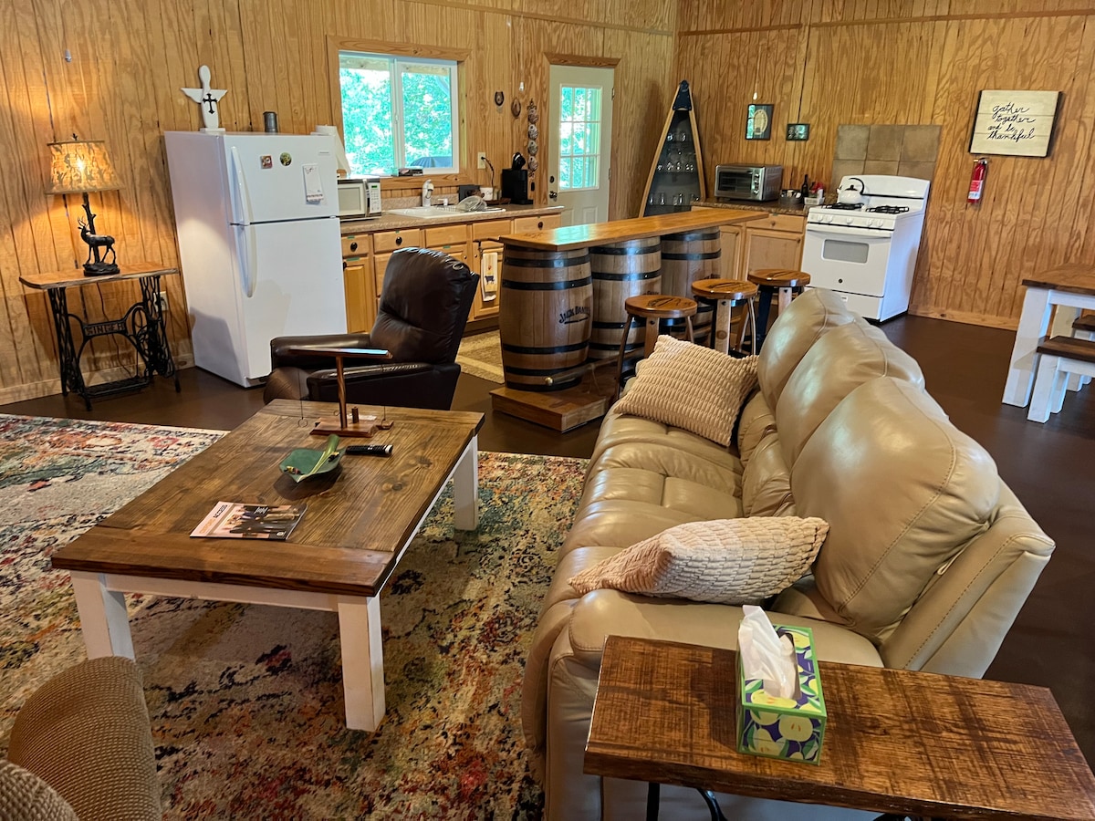 Adventure awaits you in this rustic getaway. On 10 Acres with Blueberries, Peaches, Black Berries, Apples and fresh eggs and a Hike-able .20 Trail. Only 9.6 miles from Talladega Speedway. 8 miles to Logon Martin lake/park boat ramp. Down town Birmingham is 40 minutes, Oxford/Anniston 25mi. Mountain Cheaha State Park 25 minutes and what a beautiful view in the fall!! Great motorcycle ride up the mountain as well. Talladega National Forest 15 minutes. some of the best bicycle trails. Enjoy