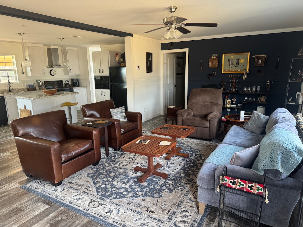 Relax with the whole family at this peaceful place to stay. At Thomas Acres in the 1900's Thomas Cabin you can enjoy quiet walks to the creek, kayaking, catch and release fishing along the lake or a friendly pet from the sweetest farm animals. We aren't just a place to stay but a true southern charm retreat experience! The cabin features 3 bedrooms with 2 king, 2 twin beds, and 2 full bathrooms. Conveniently located under 10 miles to multiple shops and restaurants, winery and more.