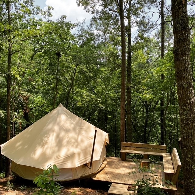 Private to your group 16ft Diameter Canvas Bell Tent with wood stove on a Yurt Platform in the Forest with a woodstove, Queen bed, linens, bedding, pillows and towels. Fall - Spring: shared Hot Tub Available Friday nights, Shared Sauna Available with cold plunge Saturday nights. Parking for one (1) car per booking. No Pets SoloStove fire ring and built in seating. Accessed by a hiking trail ~400ft from the parking area. See Parksland Retreat updates on insta gram @parkslandretreat