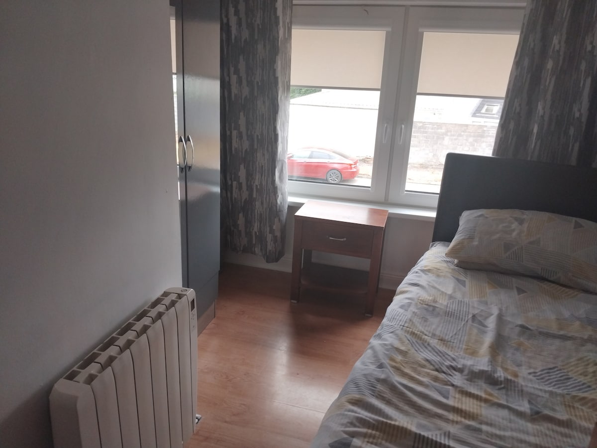 Newly renovated space with 5G WI-FI, Compact En-suite shower room located in a quiet area. Easy access to the Number 27 Bus route with frequent service to and from the city centre. Wall-mounted 40" TV Chromecast Microwave Kettle & Toaster Two Ring Electric Hob Iron & Ironing Board Undercounter Fridge Free on-street parking Large supermarket nearby ( Dunnes Stores). Beautiful Park nearby.