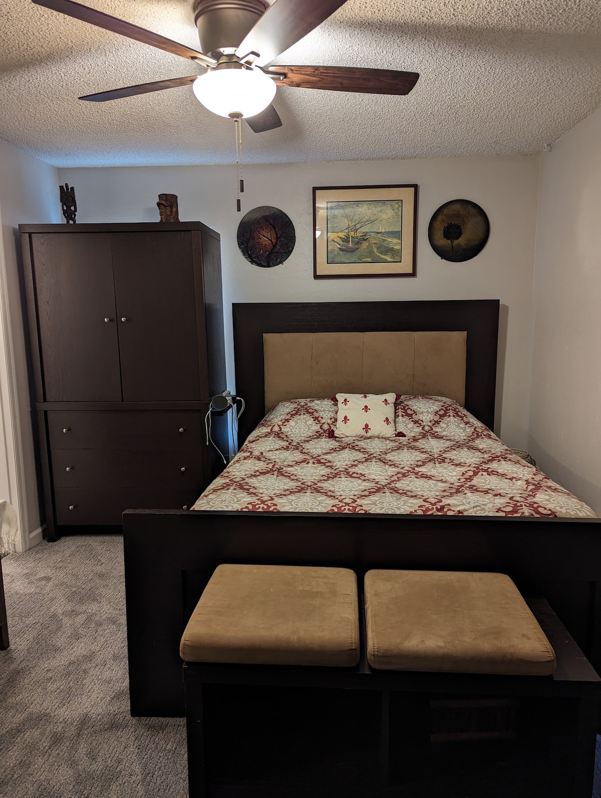 Welcome to your peaceful getaway, central to everything in Tallahassee! King bed ✔ Spacious, mural wall patio with a fenced back yard ✔ Private Parking ✔ Dogs Welcome ✔ Well-stocked kitchenette ✔ Mid-century charm ✔ Coffee, tea, snacks ✔ Cozy up with a movie in front of the custom wood slat wall, cook dinner in the kitchenette, and get a quiet night's rest under a stylish wood ceiling. You are: - 5 mins from TMH - 8 mins to downtown - 8 mins to FSU - 7 mins from I-10