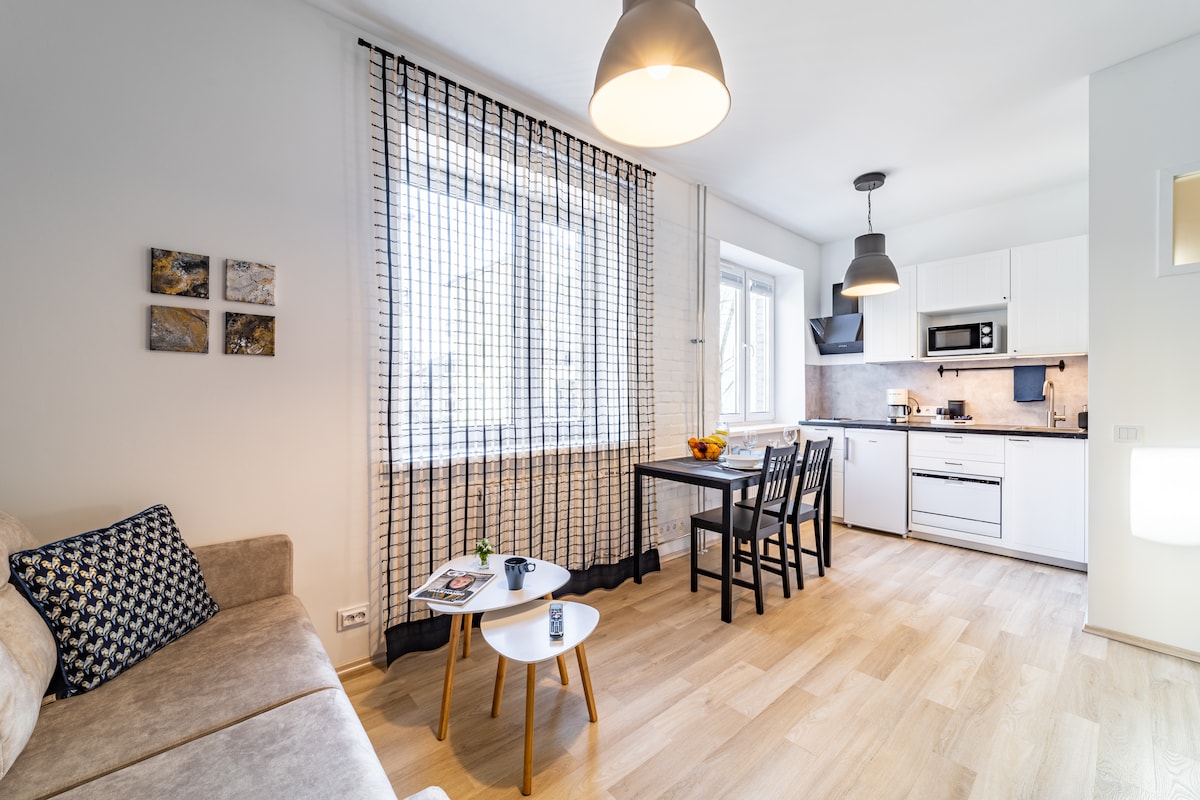 Enjoy your stay at a stylish apartment that has unique architecture inside and on the exterior. Apartment is located at the heart of vibrant and artsy Rotermanni district that includes the best restaurants, cafes and is just 2 min walk to the Old Town. Apartment is set up by a team of professionals. It includes comfortable sheets, towels and essentials. Sofa bed is included in price for 3-4 people bookings. If booked for 2 persons the sofa bed is for extra cost. Contact us for more details :)