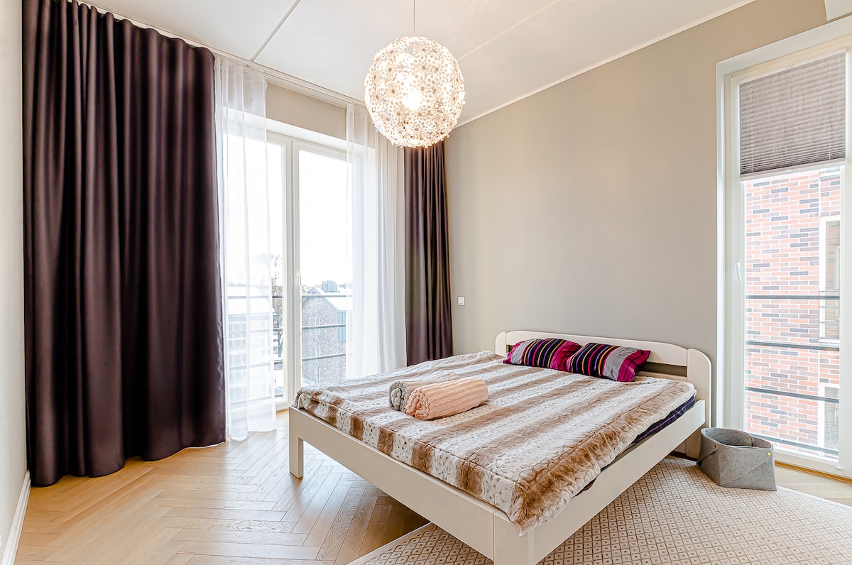 You´ll be staying in an exquisite cozy apartment in central Tallinn. This fully-equipped apt has beautiful views to the sea and the city, its spacious, it has a king-size bed. The paid parking garage is in the basement. Everything you´ll need is in a walking distance - Old Town is in 5 min, the bus station and harbor in 10 min away. You´ll find a small gym and a spa with a pool, a department store and supermarket in the same building complex.