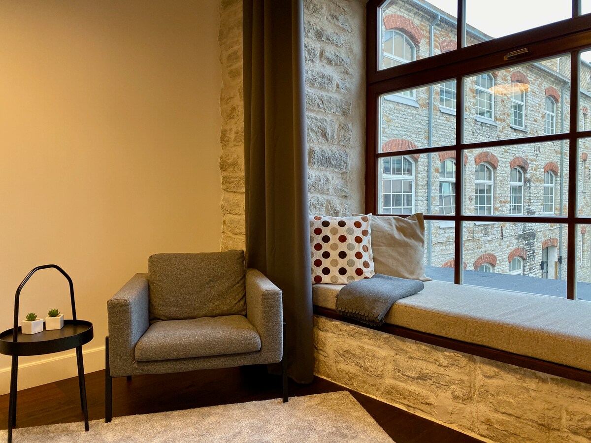 The 70 m2 loft set on two levels in a recently renovated historic building in a peaceful residential street, short walk from the Old Town, Telliskivi and Noblessner. Private patio, windows facing the courtyard, parking. With 2 bedrooms the apartment is ideal for couples and friends sharing and it is also great for families. Premium quality beds, feather duvets and pillows, sateen bed linen and black out curtains assure a goodnight sleep.