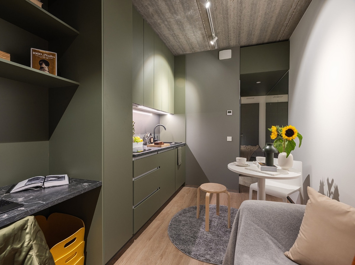 This studio apartment has everything you need to live, work and play. Get the practical things like a fully equipped kitchen, in-house gym, fast WiFi, 24/7 support, and regular professional cleaning, and fun stuff like a rooftop terrace and smart TV. Stay in comfort for as long as you’d like – days, weeks or months.